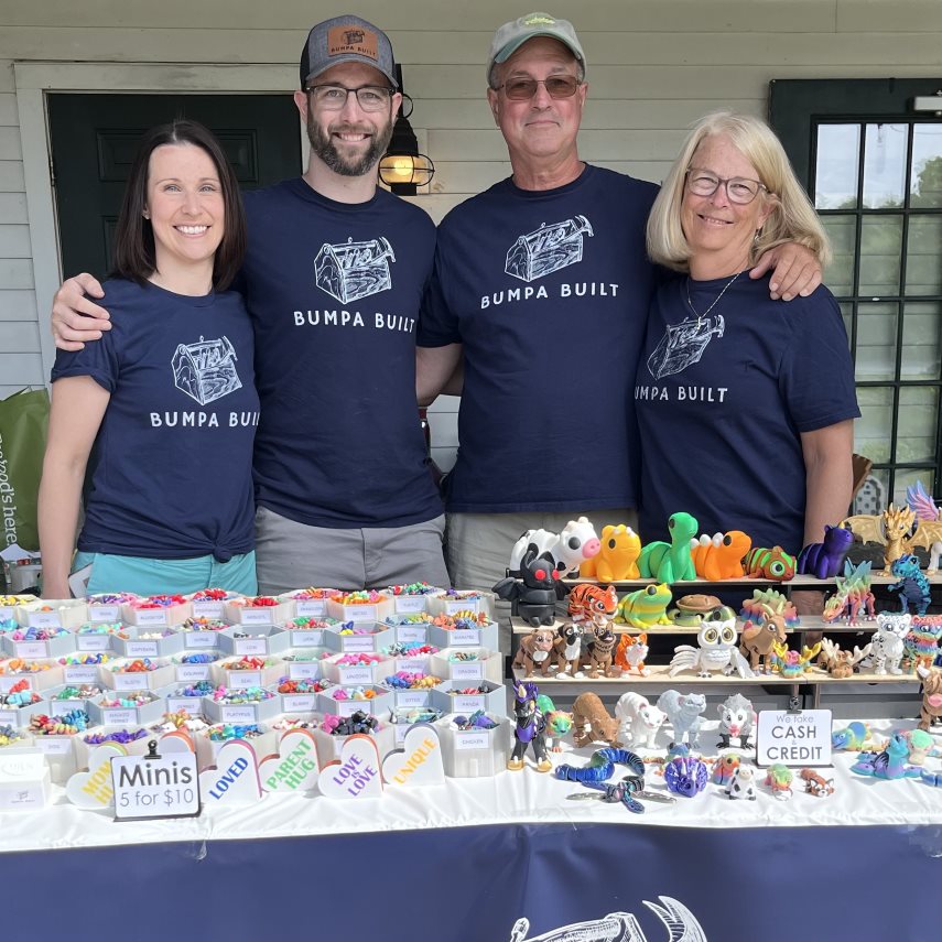 Bumpa Built began in 2023 with a simple request from a little boy to his dad: “Can you make me a bearded dragon toy?” Using their 3D printer, the duo created a toy that the boy loved so much, he brought it to friends’ houses, where it quickly became the center of attention. Seeing the excitement it sparked, they decided to create more fidget toys and brought them to a birthday party. The colorful, imaginative designs were an instant hit, and the idea for Bumpa Built was born.