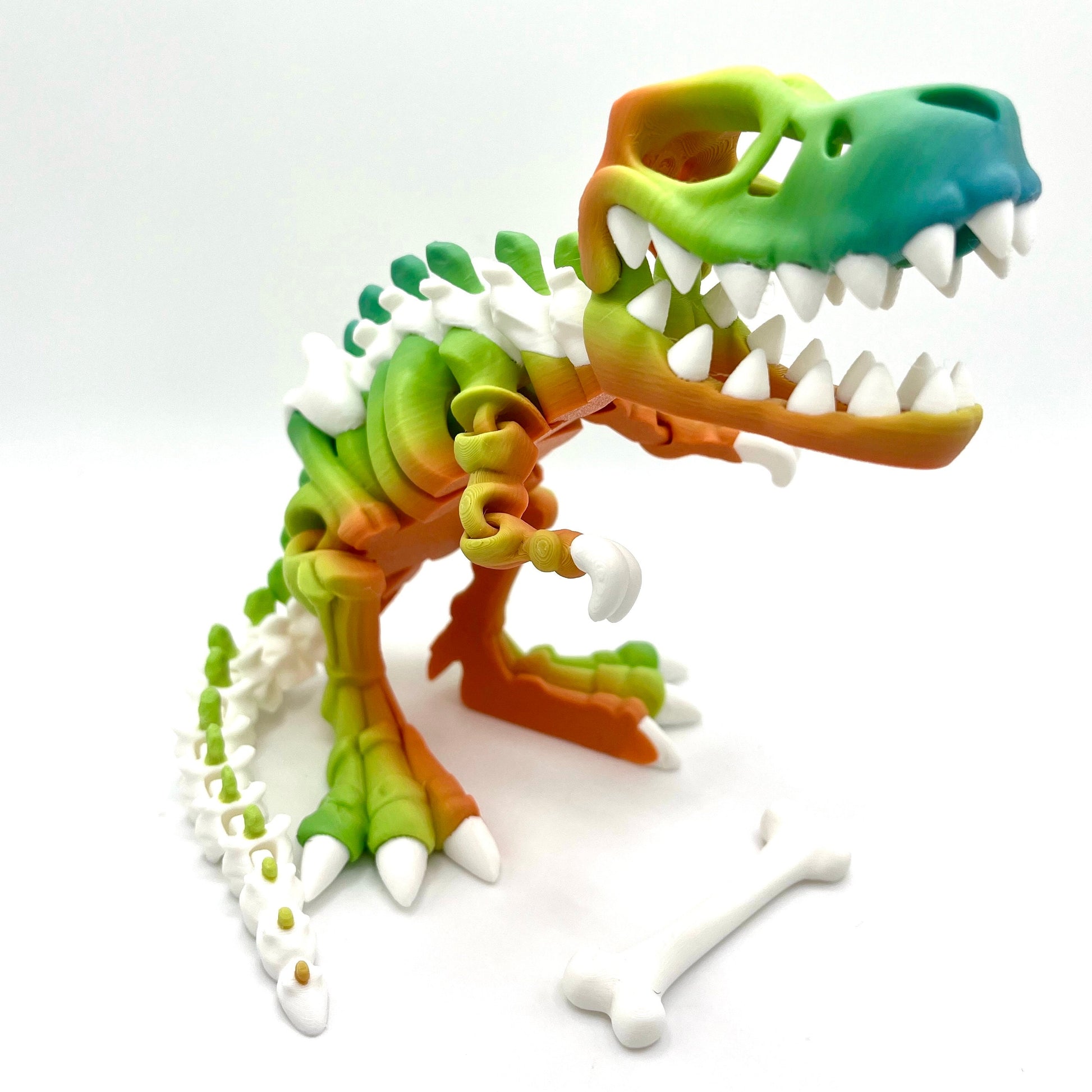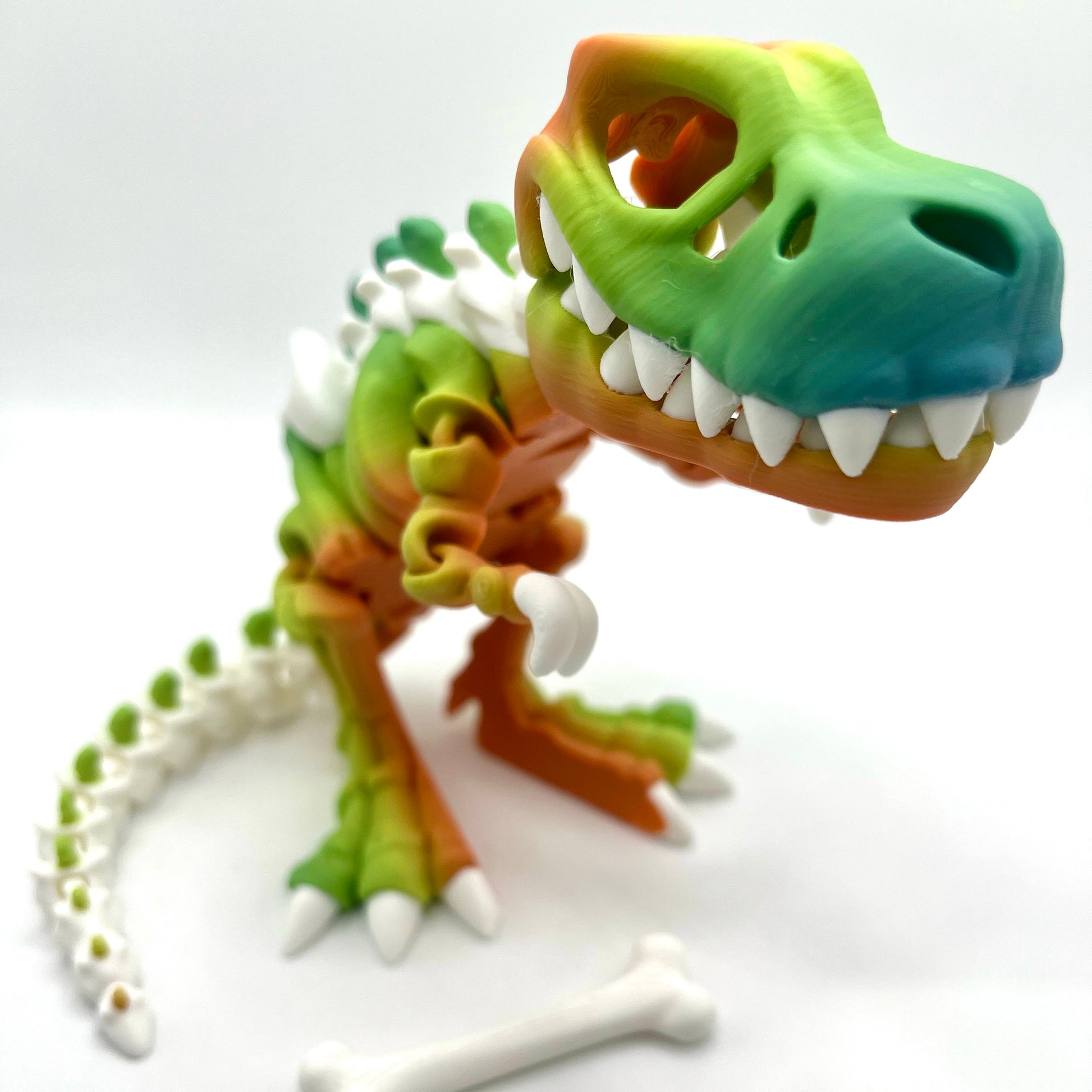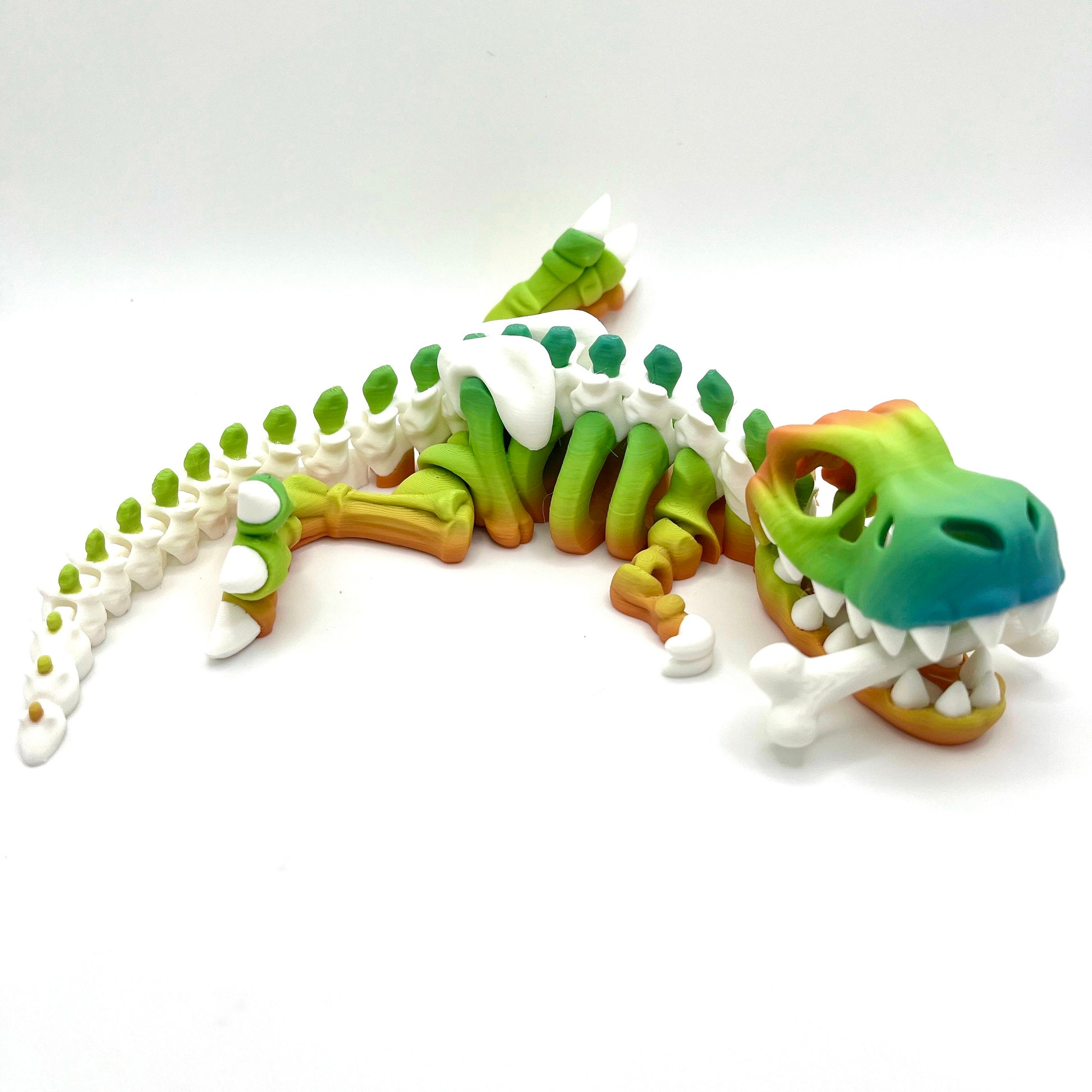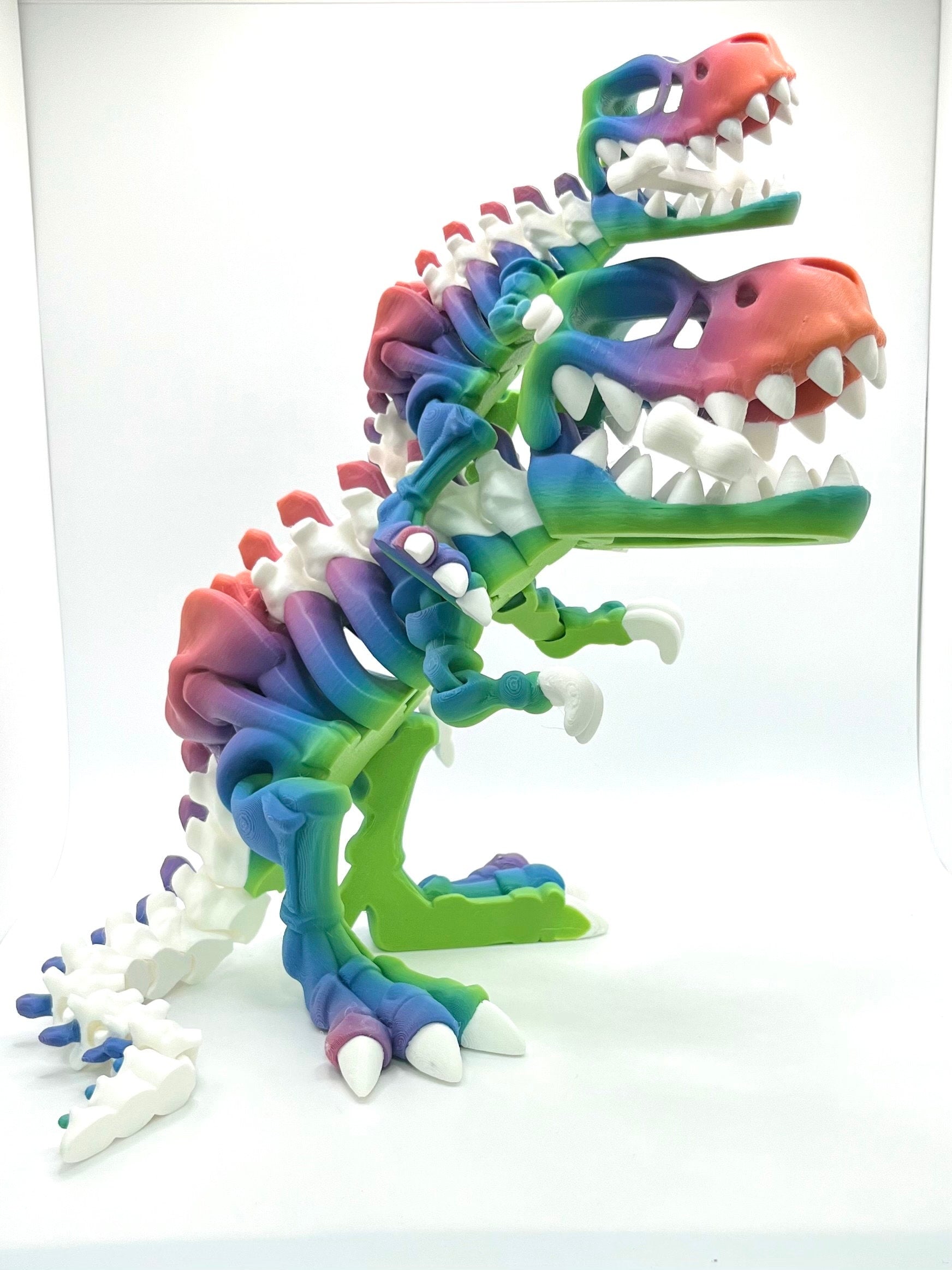 Welcome to our whimsical world of the Rainbow T-Rex Skeleton Toy, where prehistoric meets stress relief! This fully articulating dinosaur toy is not just any ordinary dino - it's a vibrant, rainbow-colored T-Rex skeleton that's perfect for relieving stress and anxiety while sparking your imagination.
