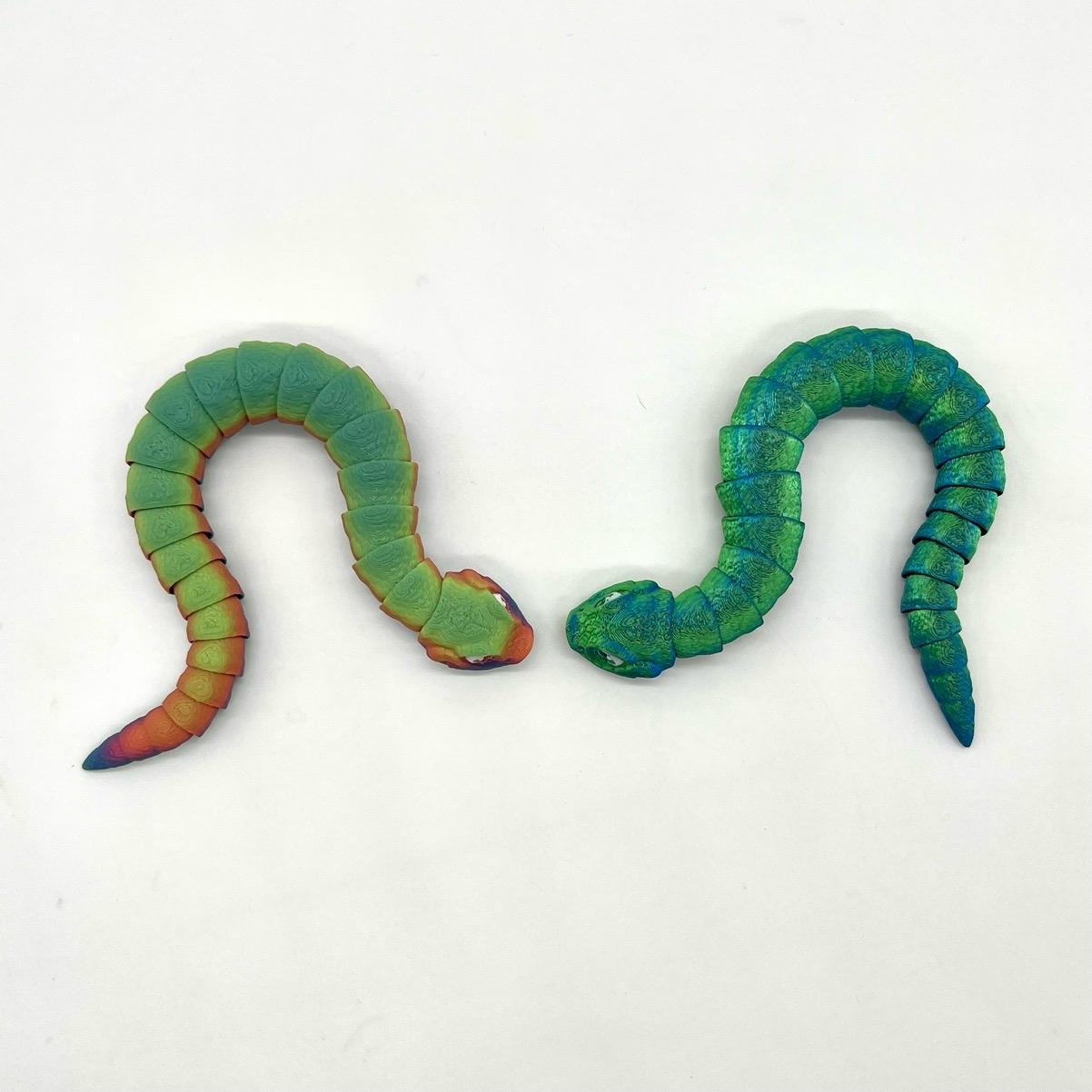 Introducing the Hog nose snake figurine, a unique and visually appealing addition to any display or collection. This figurine is fully articulating, allowing for a range of motion and posing options, making it more interactive and fun to play with. Measuring 10 inches long, it is a substantial and noticeable piece that can be easily displayed or used as a fidget.