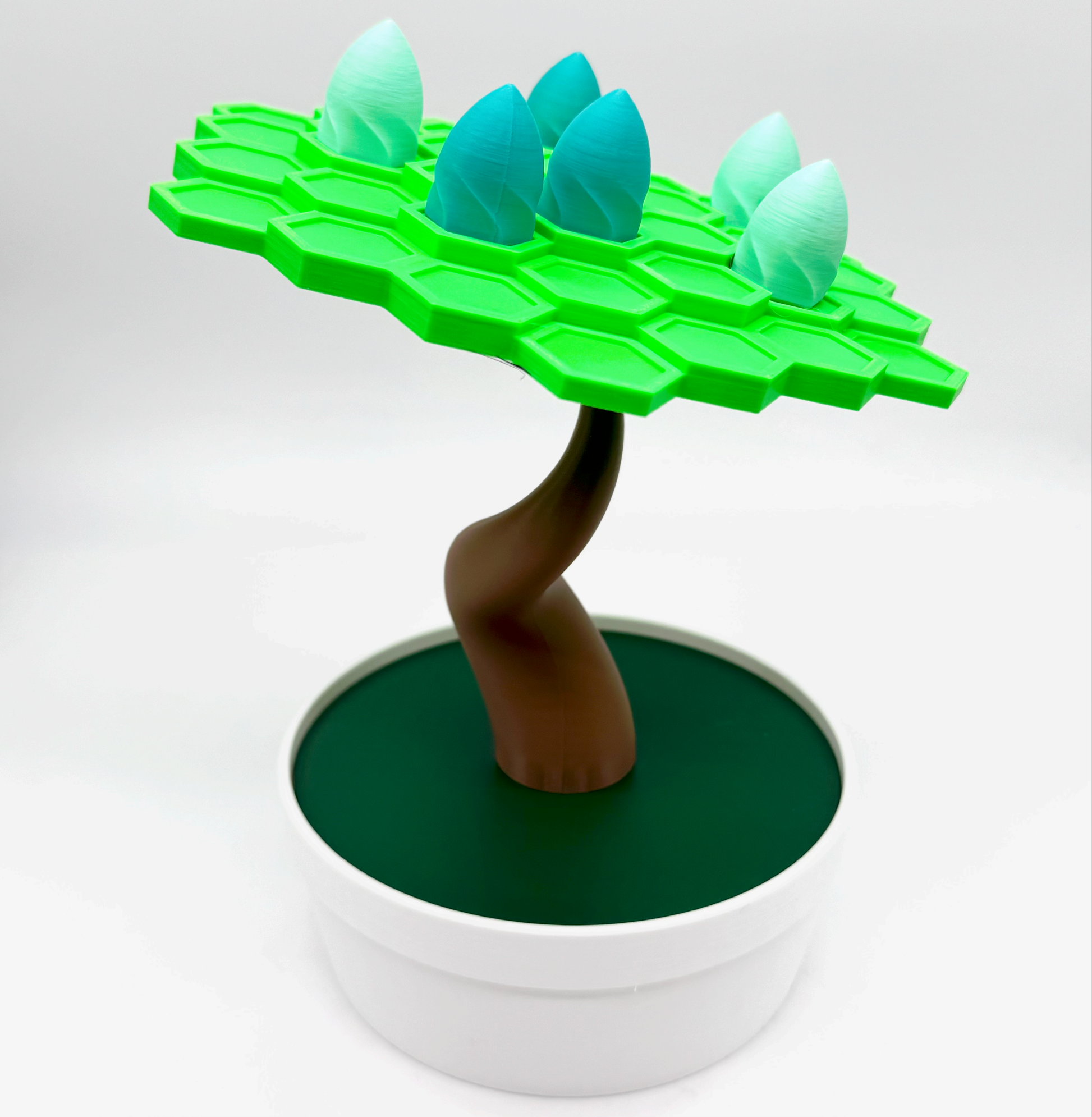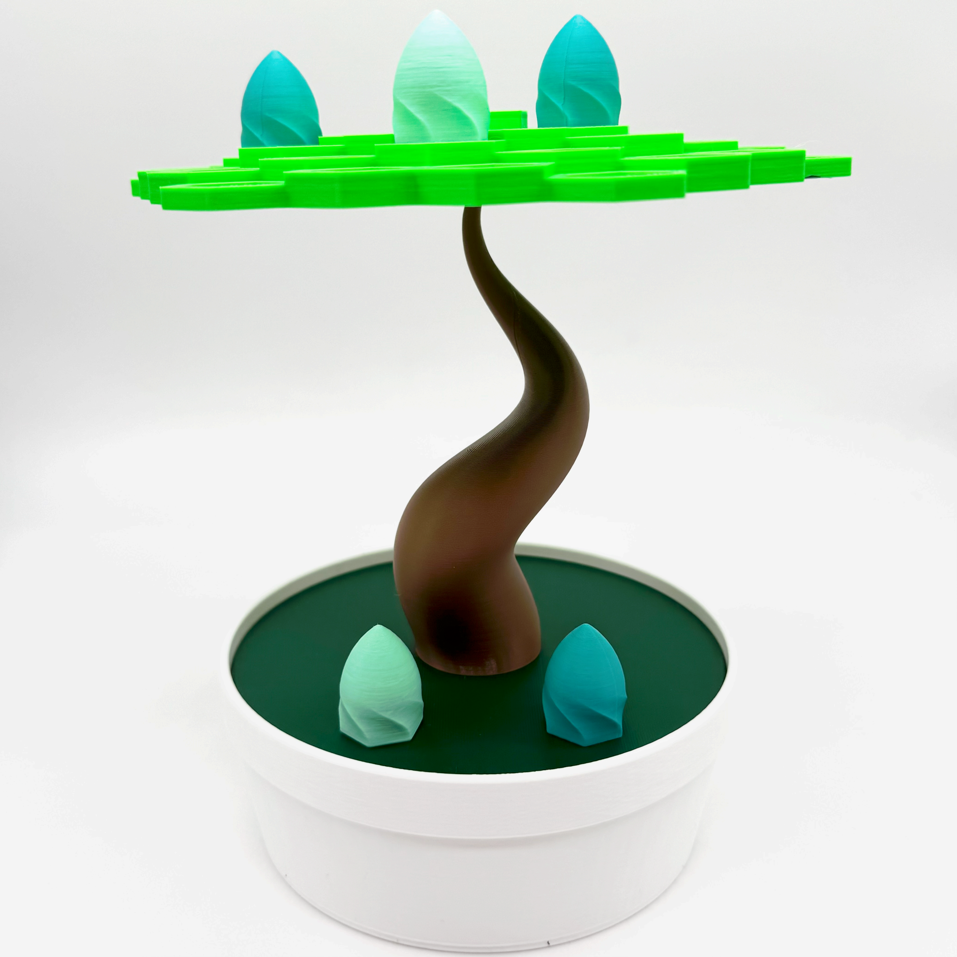 Balance the Bonsai, Before the Blunder! This beautifully crafted 3D-printed game is a test of skill, patience, and steady hands. Players take turns adding leaves to the bonsai tree, carefully balancing each piece to avoid the ultimate blunder-tipping the tree! Designed to bring moments of calm, laughter and friendly competition. Bonsai Balance is perfect for families, friends or anyone who loves a good challenge!