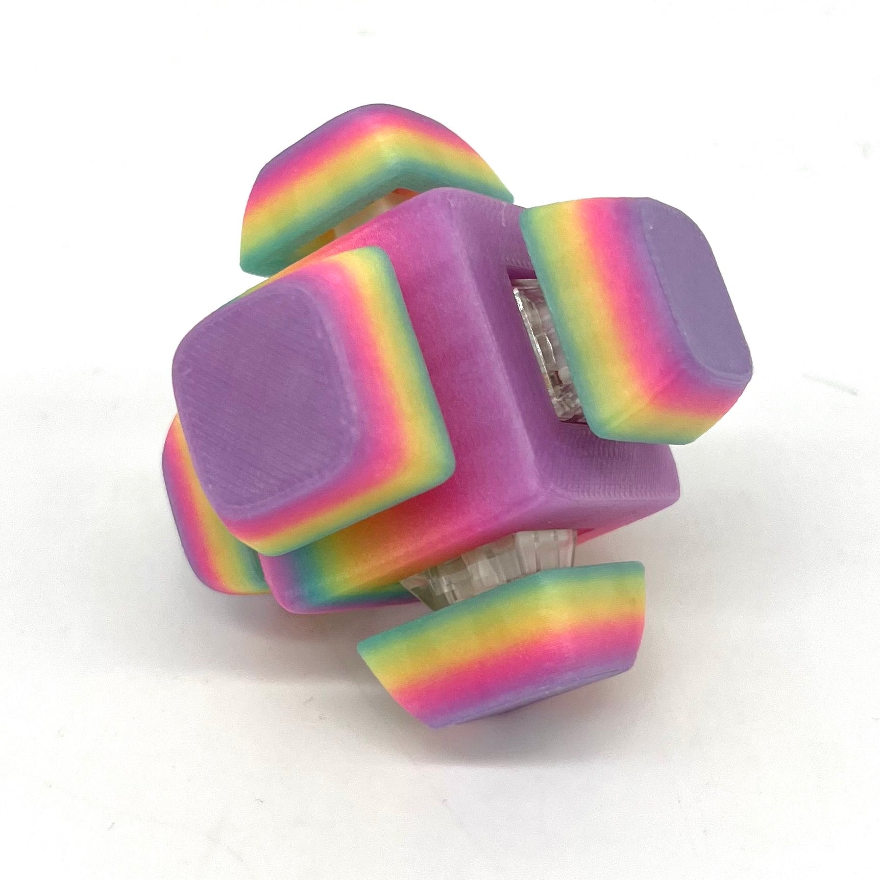 Fulfill your deepest sensory needs with this six sided clicker you won’t be able to put down. This cube has 6 individual fidget clickers that can be activated with one hand or two and will provide hours of fun and sensory stimulation. These are 3D Printed in PLA which is hypoallergenic and washable with soap and water. Colors will be a mystery surprise when you open your box!