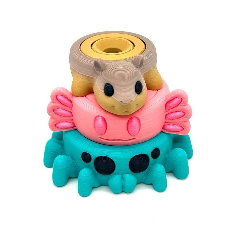 Gyroscope spinning animals for fun and cuteness overload. Offering stress relief or a welcomed distraction from an overwhelming day. These spinners are quiet, cute and small enough to fit in your pocket for discreet fidgeting. Colors may vary.