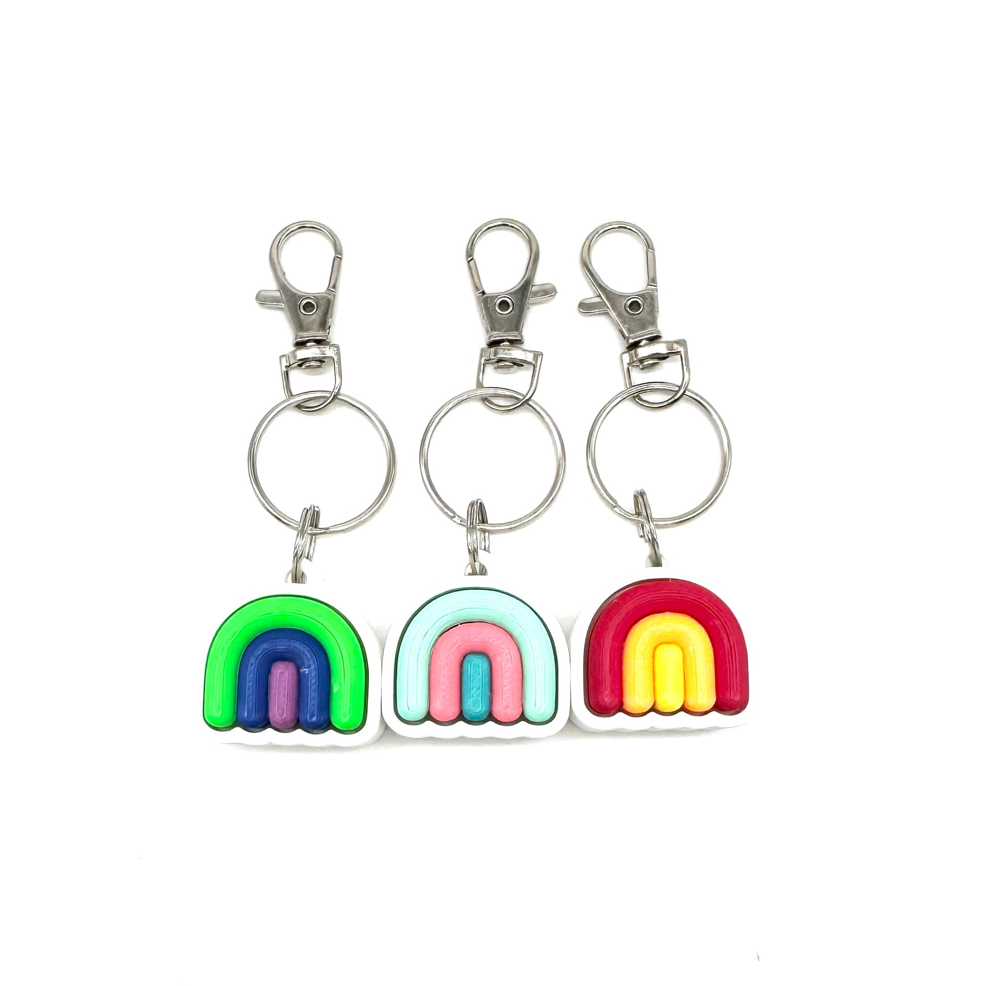 Each keychain features a satisfyingly clickable center that’s perfect for fidgeting on the go. Whether you’re swapping, collecting, or gifting, these cute little rainbows are here to brighten your day (and calm your hands).